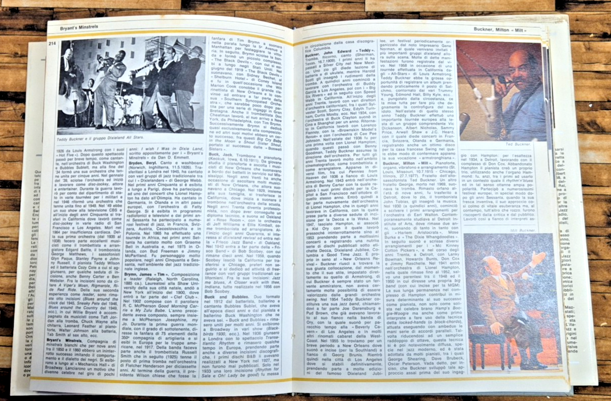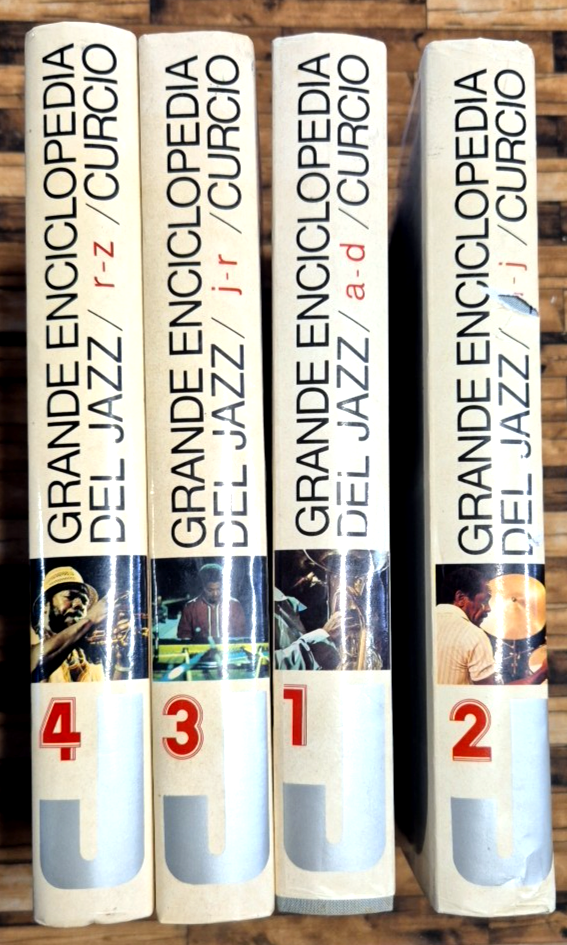 GRANDE ENCICLOPEDIA DEL JAZZ — diretta da Adriano Mazzoletti. 4 volumi completa. Armando Curcio Editore, senza data ma presumibilmente anni '70.1600 pagine totali (400 per volume circa). Illustrazioni in bianco e nero e a colori nel testo. 4 volumi rilegati in tela con sovraccoperta, formato 20×28 cm. Stato di conservazione: molto buono (pagine normalmente ingiallite).