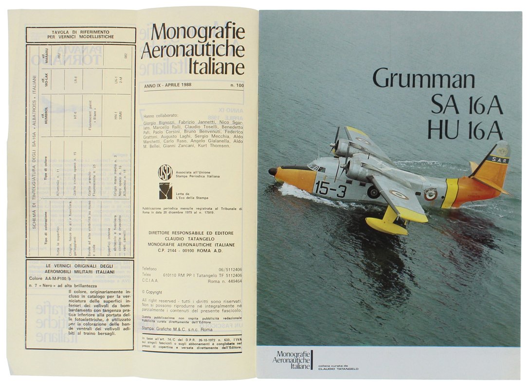 GRUMMAN SA 16 A - HU16 A - Monografie Aeronautiche Italiane n. 7 - Aprile 1988 | Livres anciens et modernes | Autori Vari