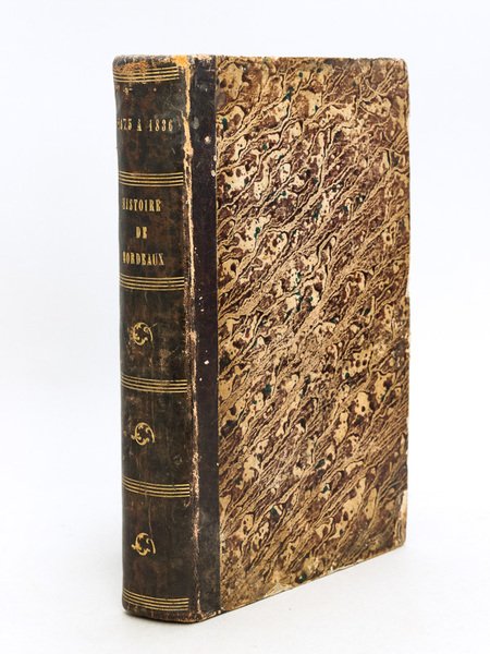 Histoire de Bordeaux, depuis l'Année 1675 jusqu'à 1836, Contenant la Continuation et le Complèment des Histoires de cette Ville qui ont été publiées par M. Lacolonie et par Dom Devienne, précédée d'un abrégé des principaux événemens rapportés par ces auteurs ; suivie de Notices additionnelles pour compléter cette histoire dans sa partie archéographique, littéraire et statistique, qui n'a point encore été traitée ; Avec des tablettes chronologiques, indiquant les faits remarquables de l'histoire de France, depuis 1675 jusqu'à présent par M. Bernadau, 1 vol. in-8 reliure demi-basane noire, Imprimerie de Balarac Jeune, Bordeaux, 1837, 605 pp. Edition originale de la fameuse Histoire de Bordeaux de Bernadau (elle sera rééditée en 1837). Etat très satisfaisant (coupes frottées, dos lég. frotté, qq. rouss.)