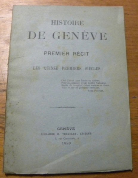 Histoire de Genève. Premier récit. Les quinze premiers siècles. | Livres anciens et modernes |