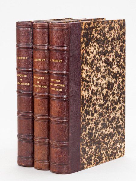 Nouvelle édition revue et corrigée, 3 vol. in-8 reliure uniforme de l'époque demi-chagrin brun, dos à 5 nerfs, Furne, Jouvet et Cie, Paris, 1866, IV-550 ; 510 pp. :Histoire de la Conquête de l'Angleterre par les Normands, de ses Causes et de ses suites jusqu'à nos Jours en Angleterre, en Ecosse, en Irlande et sur le Continent (2 Tomes - Complet) [ On joint : ] Lettres sur l'Histoire de France, pour servir d'Introduction à l'Etude de cette Histoire - Dix Ans d'Etudes historiques Complet. Etat très satisfaisant (cachet d'ex-libris répété sur tranche en tête, et dans le texte, très bon état par ailleurs) popur cet exemplaire bien relié.