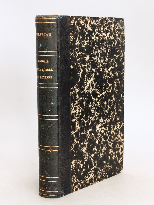 Par le Colonel Baltazar, réimpression textuelle faite sur l'unique exemplaire de l'Edition originale et accompagnée d'une Notice et de Notes, par M. Charles Barry, un des 200 exemplaire sur papier vergé numéroté (n° 195), 1 vol. in-8 reliure demi-basane noire, Charles Lefebvre, Bordeaux, 1876, 2 ff., lvii pp., 2 ff. , iv pp., 1 f., 233 pp. et 2 ff. Bon état (très petit accroc en dos, bel état intérieur) pour ce récit des combats de la Fronde, en Guyenne, par un officier du parti des Frondeurs. Les faits décrits se sont déroulés de 1651 à 1653.