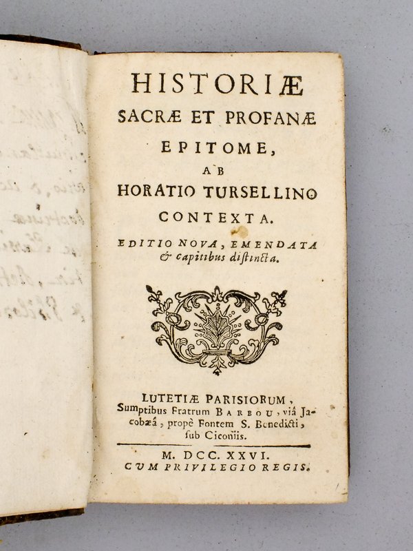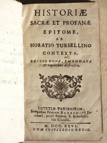 Historiae sacrae et profanae Epitome, ab Horatio Tursellino contexta | Livres anciens et modernes | Tursellinus, Horatius, [ Torsellino, Orazio ]