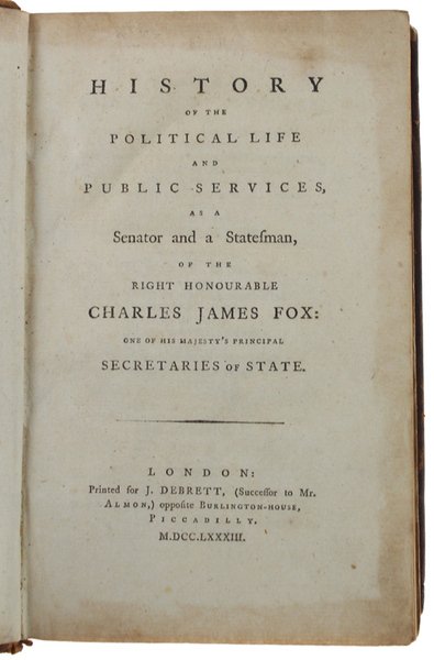 HISTORY OF THE POLITICAL LIFE AND PUBLIC SERVICES, AS A SENATOR AND A STATESMAN, OF THE RIGHT HONOURABLE CHARLES JAMES FOX: one of his majesty's principal secretaries of state. | Livres anciens et modernes | Fox Charles James