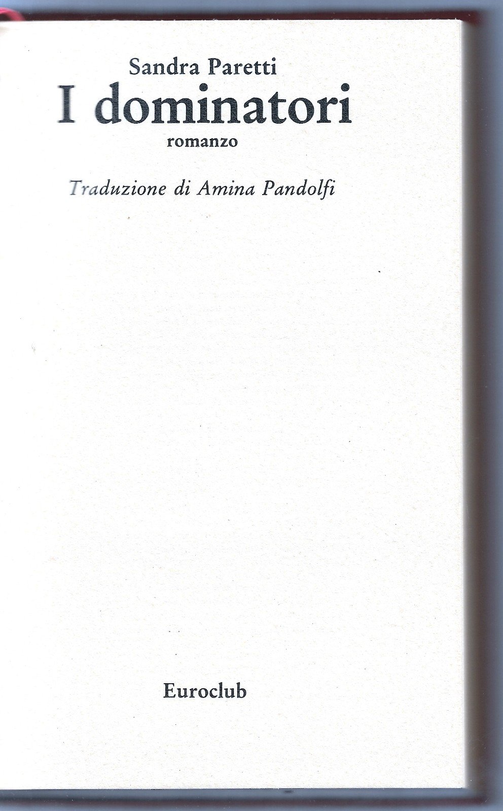 Libro vintage. Argomento: Romanzo. Autore: Paretti Sandra. Editore: Euroclub. Luogo: Bergamo. Anno: 1980. Formato: in-8°. Pagg: 350. Legatura: Cartonata in tela. Collana: n. d. Conservazione: Discreta. Traduzione di Amina Pandolfi. Lieve ingiallimento delle pagine. piatto muto, titolo impresso in bianco al dorso.