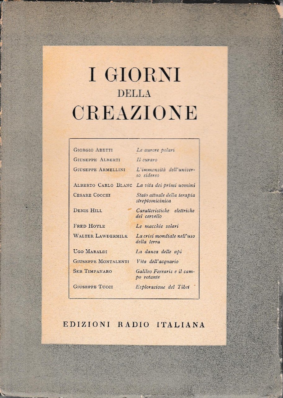 Copertina cartonata sporca lievemente, bordi stanchi, lievi segni di usura al dorso. Tagli e pagine ingialliti. Collana: “Quaderni della Radio/IV". 123 Buono (Good) .