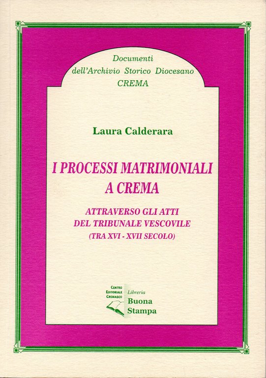 I processi matrimoniali a Crema attraverso gli atti del Tribunale Vescovile (tra XVI-XVII secolo) | Livres anciens et modernes | Laura Calderara