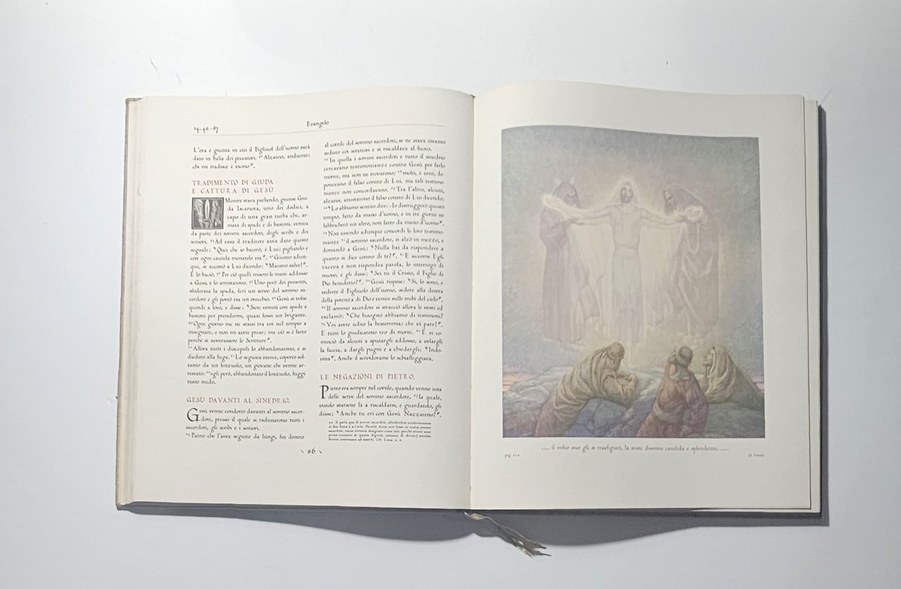 Edizione illustrata de I Santi Evangeli, volume di grande formato con elegante copertina editoriale in tela decorata.