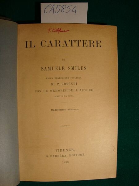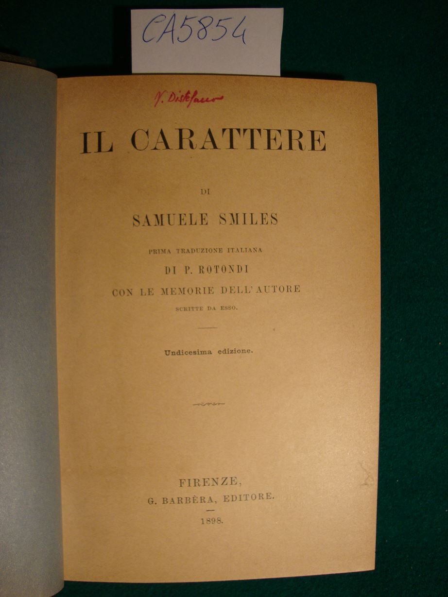 Il carattere | Livres anciens et modernes | Smiles Samuele, Trad. P. Rotondi.