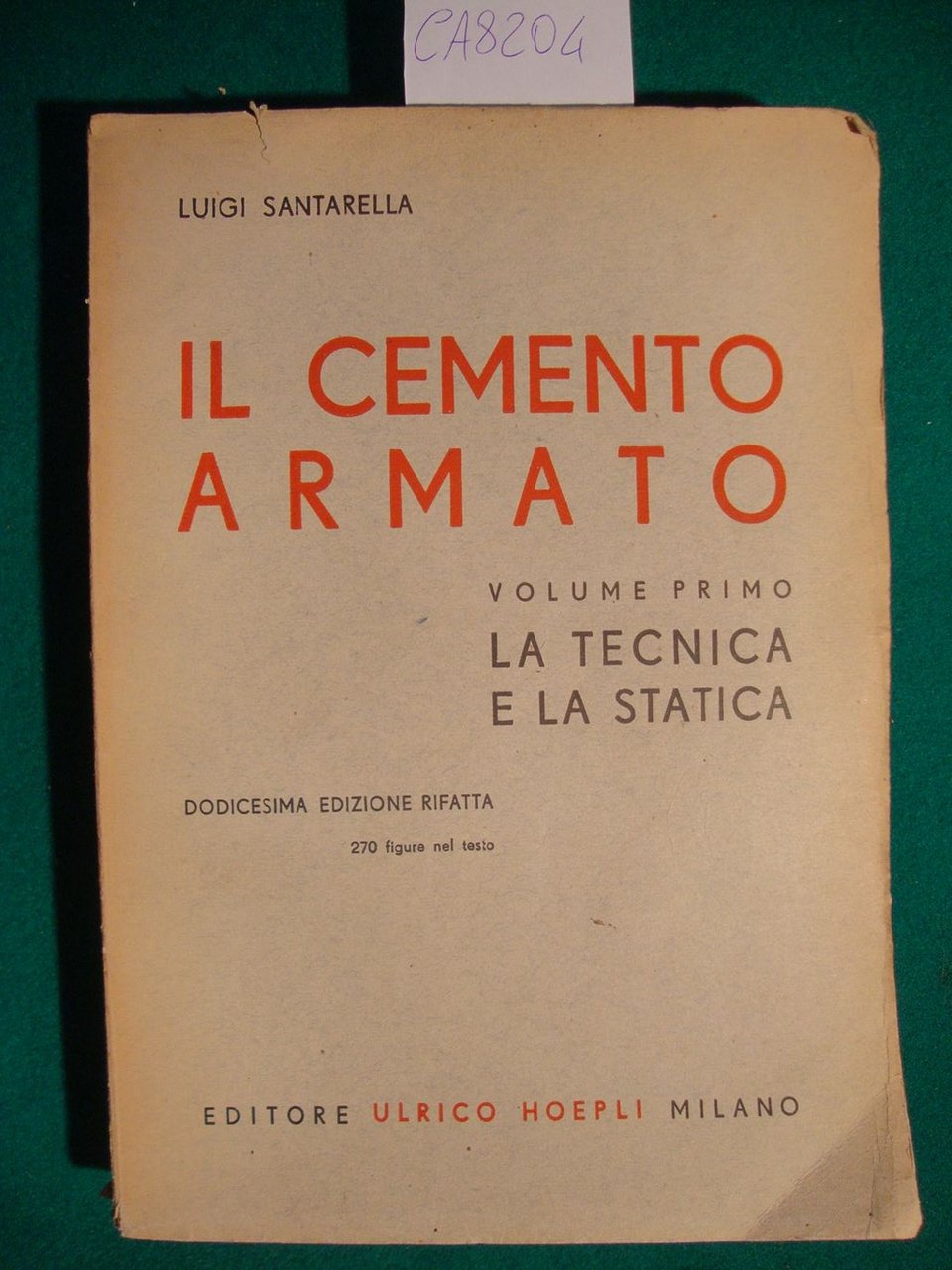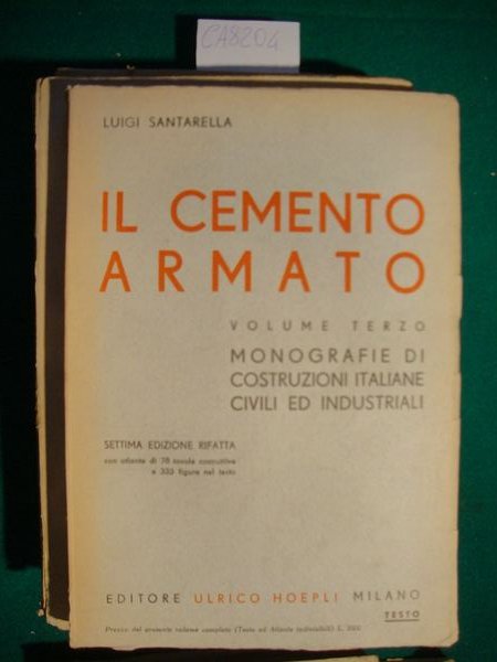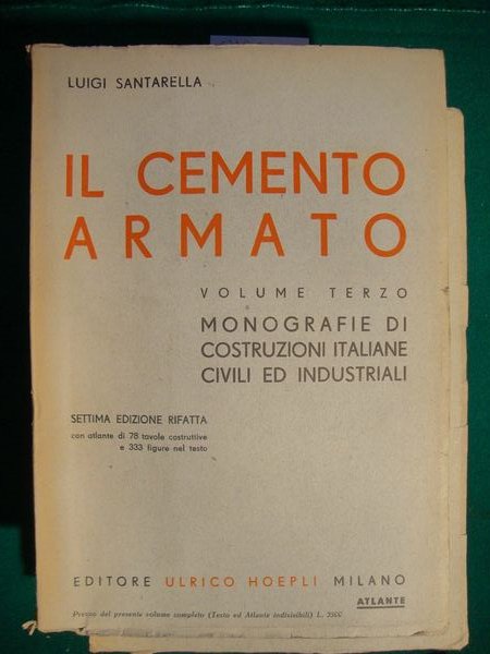 Opera in 4 volumi così descritti: 1) Vol. I: La tecnica e la statica (12ma ed. rifatta, con 270 figg. n.t., pp. XV+445); 2) Vol. II: Le applicazioni alle costruzioni civili ed industriali (11ma ed. rifatta, con 524 figg. n.t., pp. XVI+631); 3-4) vol. III - Monografie di costruzioni italiane civili ed industriali (7ma edizione rifatta con atlante di 78 tavole costruttive e 333 figure n.t.) - DETTAGLIO DELLE CONDIZIONI : Segni di invecchiamento alle coperte con abrasioni ai dorsi, fioriture in coperta e alcune macchie, marginali strappetti. Segni da studio a matita sparsi alle pagine. Gore sparse alle pagg. di guardia - .