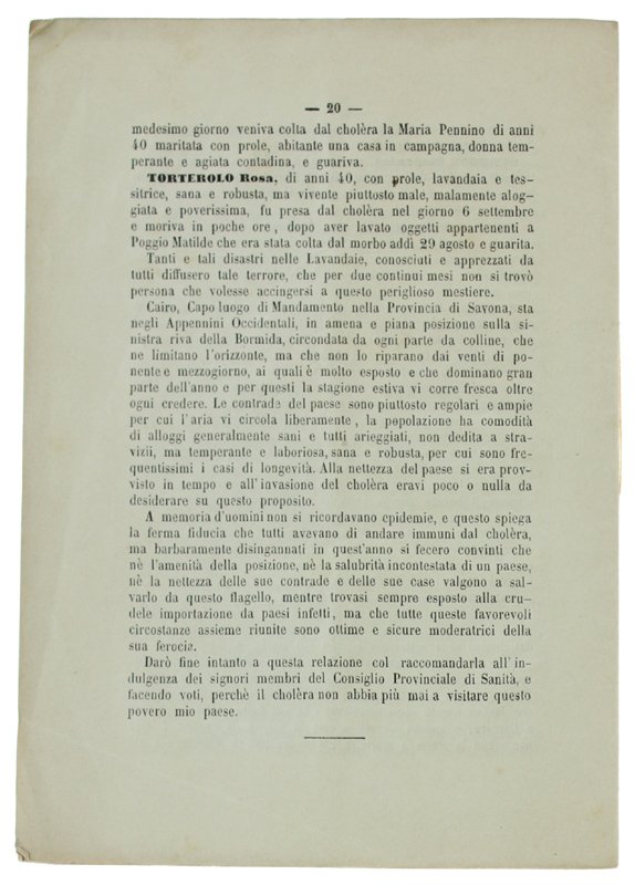 IL CHOLERA NEL COMUNE DI CAIRO mri mesi di agosto e settembre MDCCCLV - Relazione del Dottore Perfetto Cecchi