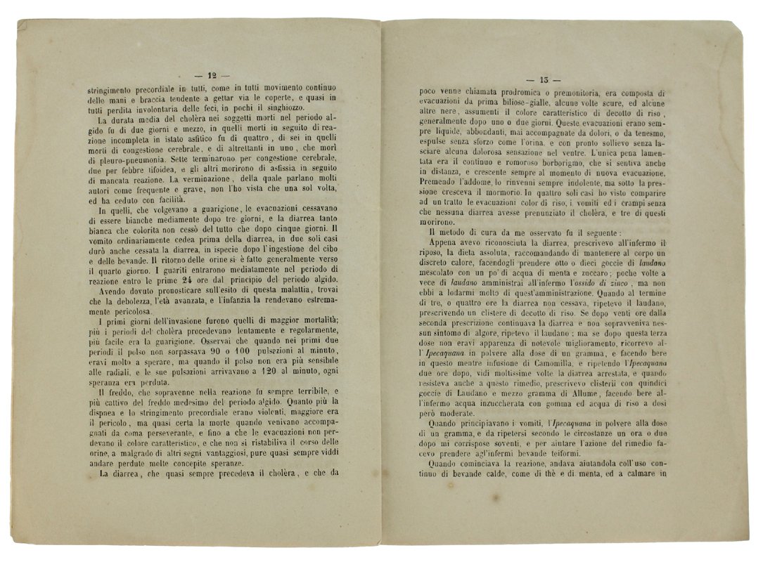 IL CHOLERA NEL COMUNE DI CAIRO mri mesi di agosto e settembre MDCCCLV - Relazione del Dottore Perfetto Cecchi | Livres anciens et modernes | Cecchi Perfetto