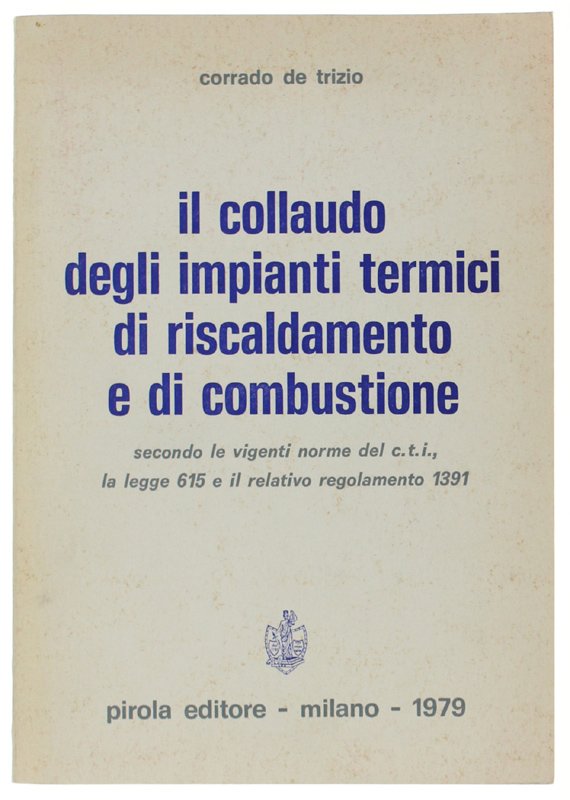 IL COLLAUDO DEGLI IMPIANTI TERMICI DI RISCALDAMENTO E DI COMBUSTIONE secondo le vigenti norma del c.t.i., la legge 615 e il relativo regolamento 1391. | Livres anciens et modernes | De Trizio Corrado.