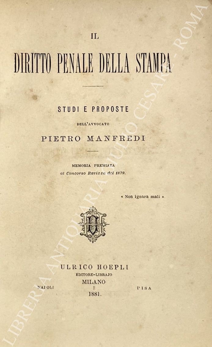 Il diritto penale della stampa. Studi e proposte | Livres anciens et modernes | Manfredi Pietro