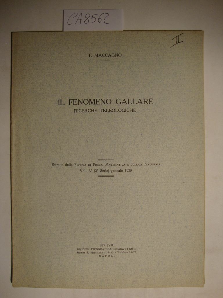 Il fenomeno gallare - Considerazioni etiologiche | Livres anciens et modernes | Maccagno Paulucci Teresita