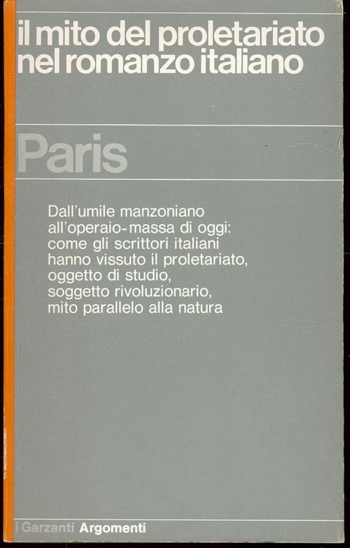 Il mito del proletariato nel romanzo italiano | Livres anciens et modernes | Paris, Renzo, ,Paris, Renzo