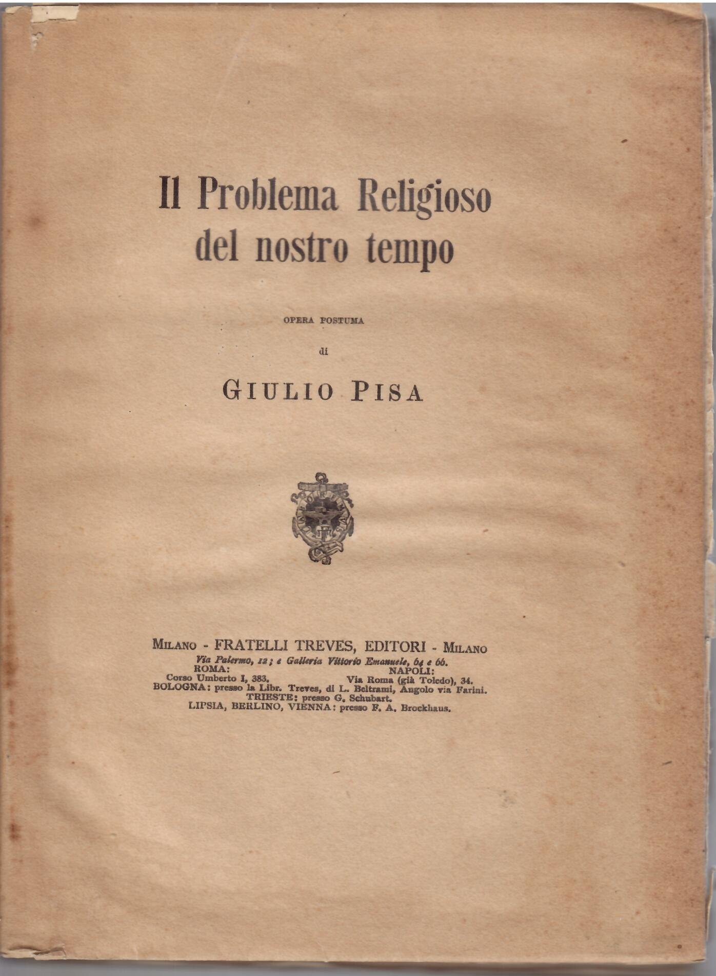 IL PROBLEMA RELIGIOSO DEL NOSTRO TEMPO | Livres anciens et modernes | Giulio Pisa