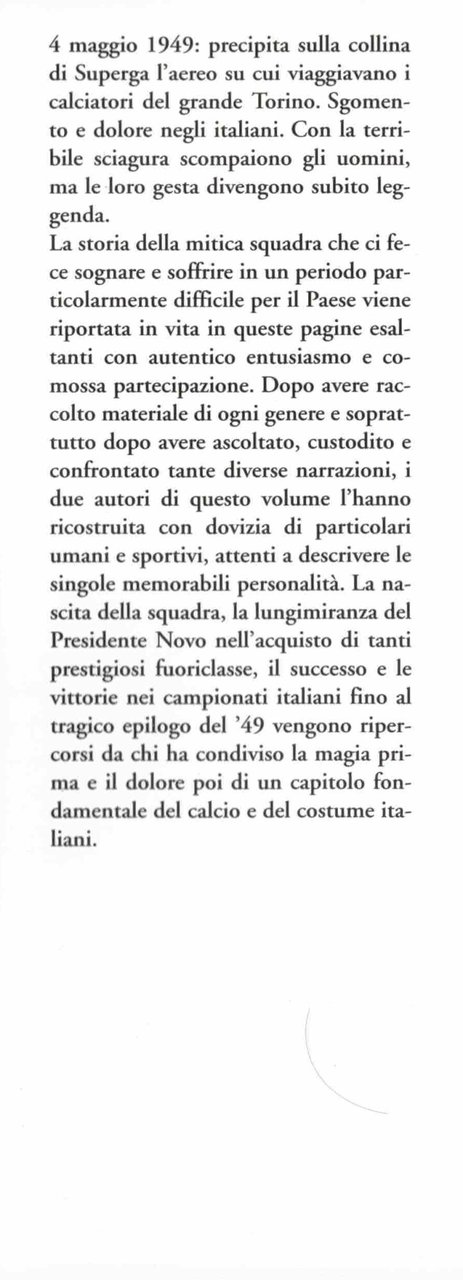 Il romanzo del grande Torino. La storia esaltante di una memorabile e irripetibile squadra di calcio e dei suoi campioni che il fato ha trasformato in leggenda