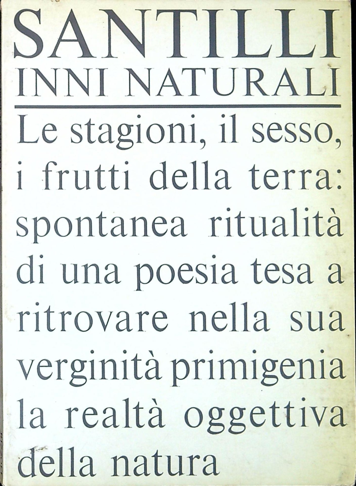 Santilli, LambertoRizzoli Inni naturali. Milano, Rizzoli 1964, 21 106 p. 106 p. ; 21 cm. (57299)