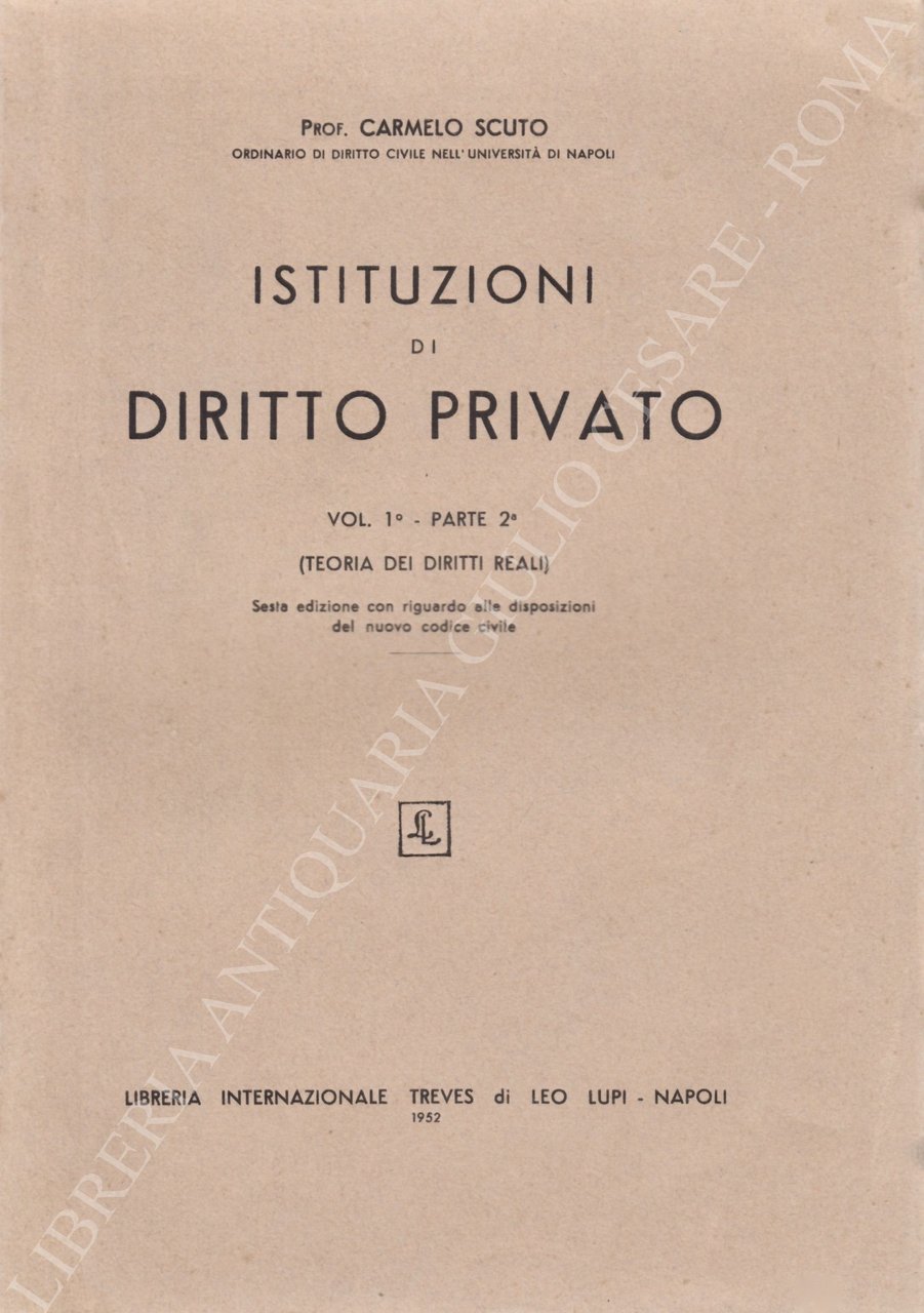 Istituzioni di diritto privato. Vol. I, Parte II - (Teoria dei diritti reali) | Livres anciens et modernes | Scuto Carmelo (1883-1955)