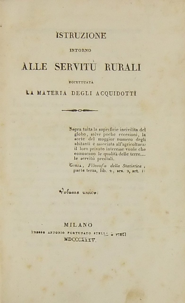 Istruzione intorno alle servitù rurali eccettuata la materia degli acquidotti. Volume unico | Livres anciens et modernes | Autori Vari