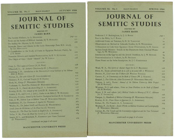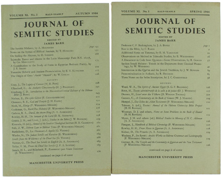 JOURNAL OF SEMITIC STUDIES. Volume XI - No. 1 - 2. | Livres anciens et modernes | Barr James (Editor)
