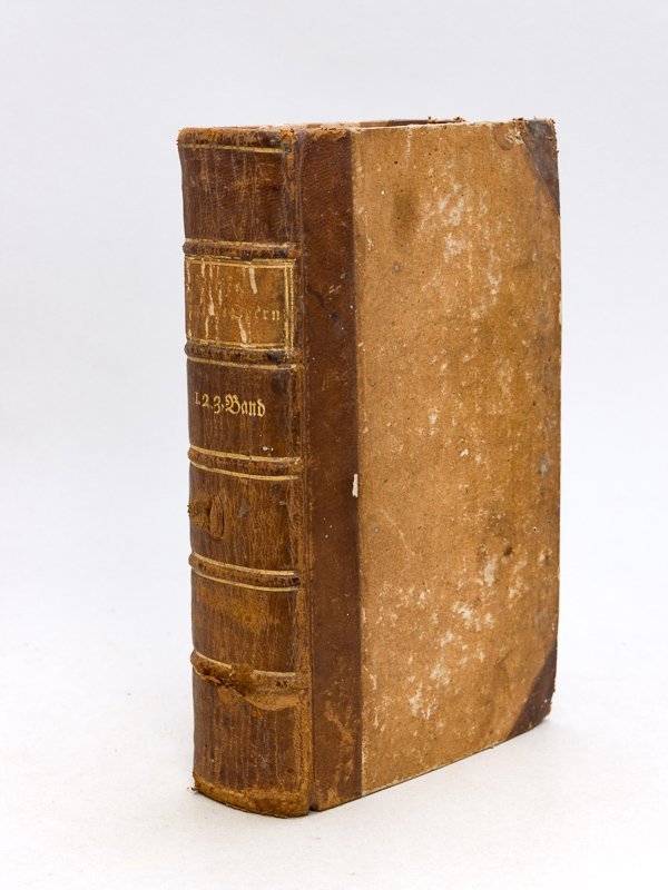 3 Theile in einem Band, 1 vol. in-12 relure demi-basane à coins marron, dos à 5 nerfs, Bey Christian Gottlieb Schmieder, Carlsruhe [ Karlsruhe ], 1778, 8 bl., 188 s. ; 1 bl. 252 s. ; 1 bl. 264 s. Etat très satisfaisant (deux accrocs au dos, mq. en première garde, bon état par ailleurs)