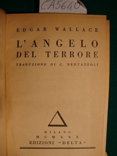 L'angelo del terrore | Livres anciens et modernes | Wallace Edgar, Trad. G. Bertazzoli.
