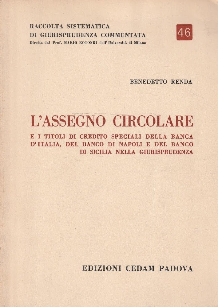L'assegno circolare e i titoli di credito speciali della banca d'Italia, del banco di Napoli e del banco di Sicilia nella giurisprudenza | Livres anciens et modernes | B. RENDA, ,B. RENDA