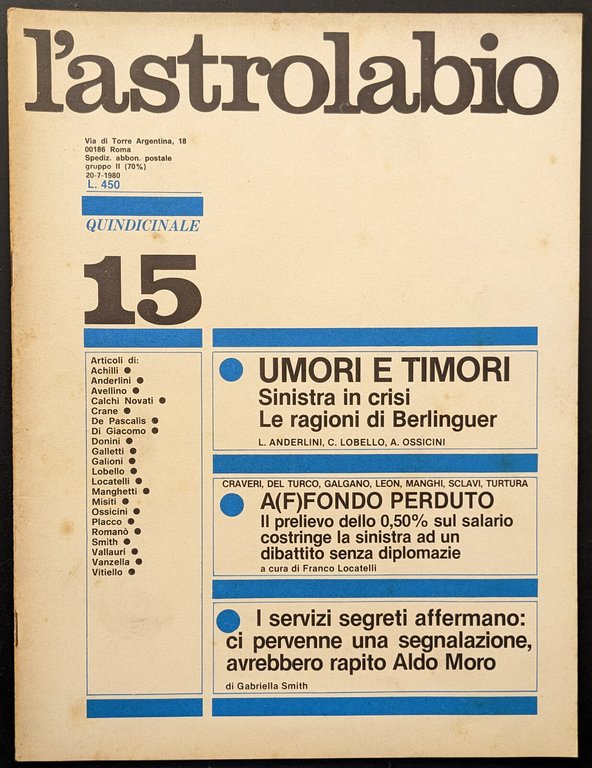 L'astrolabio 15 | Livres anciens et modernes | Autori Vari, autori vari