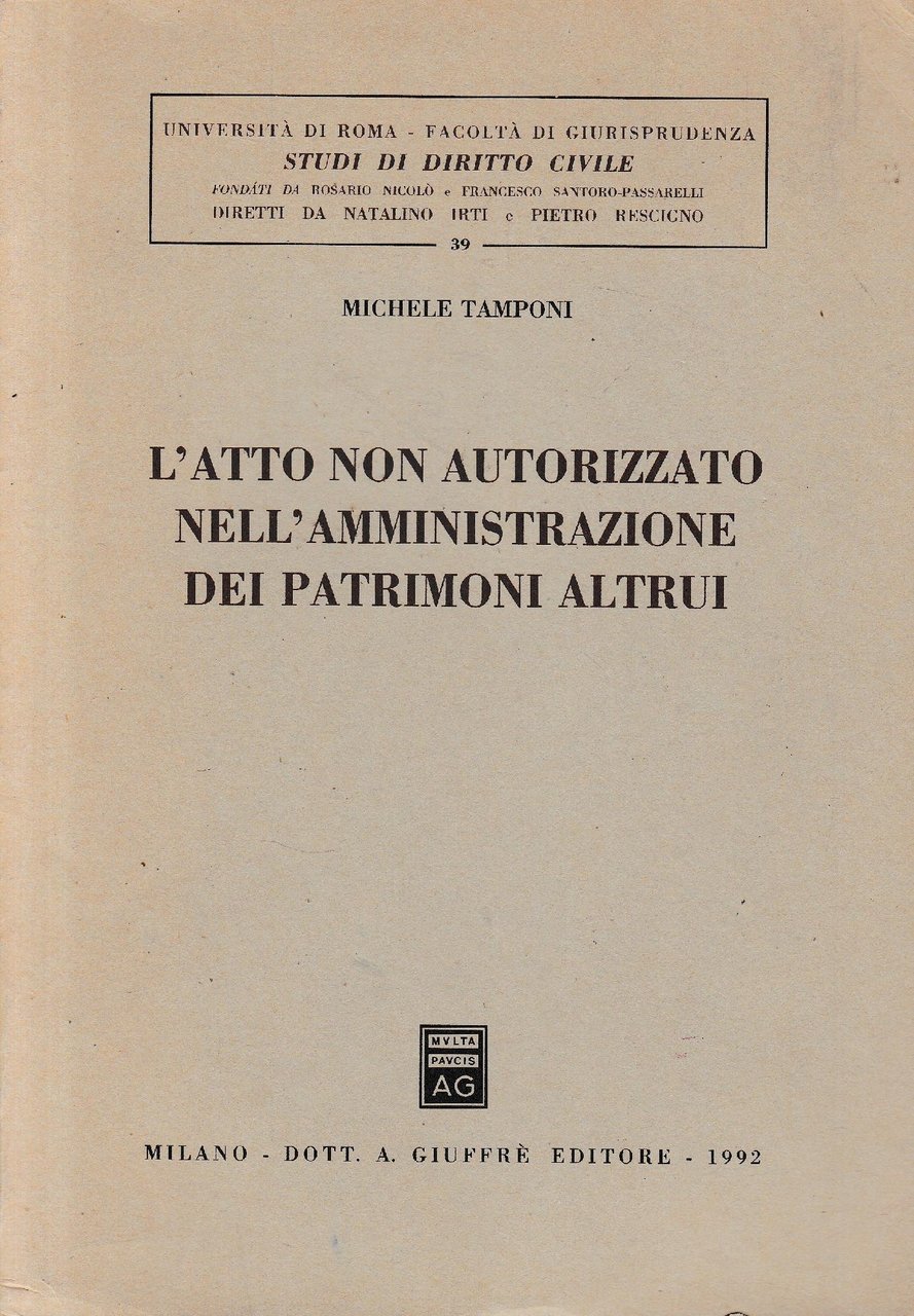 L'atto non autorizzato nell'amministrazione dei patrimoni altrui | Livres anciens et modernes | Tamponi, Michele, ,Tamponi, Michele