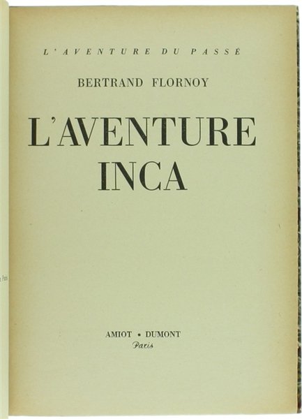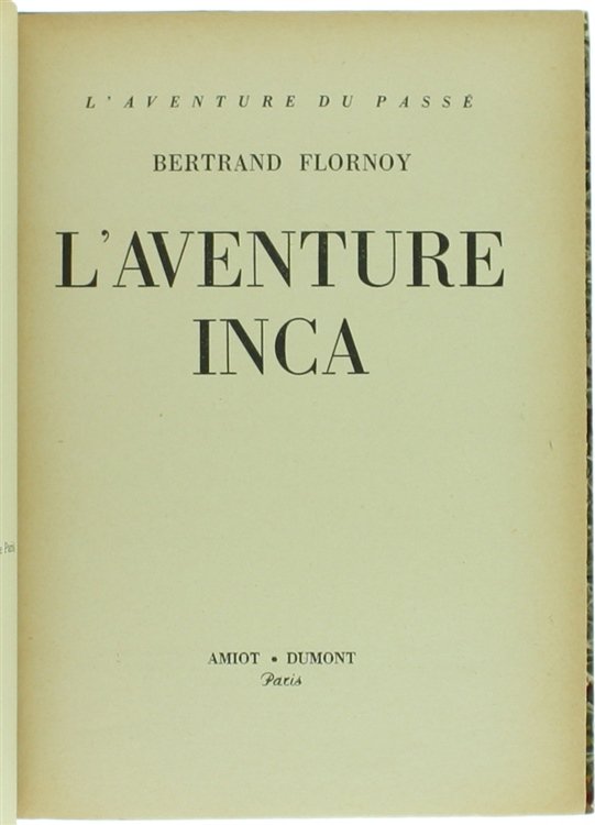 L'AVENTURE INCA. | Livres anciens et modernes | Flornoy Bertrand.