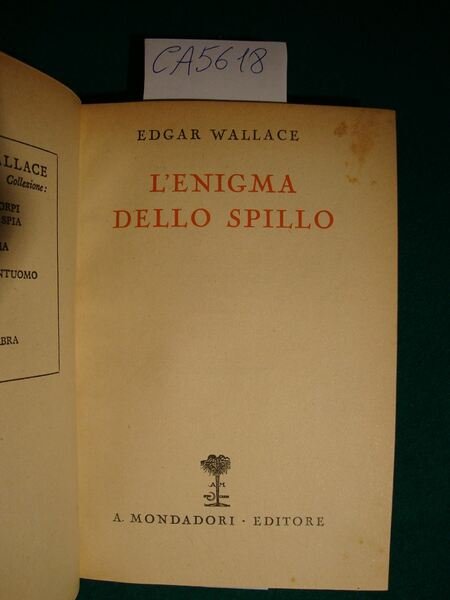 (Collana : I romanzi di Edgar Wallace - I libri gialli) Vol. della collana di romanzi - gialli di Edgar Wallace; titolo dell'opera originale - The Clue of the New Pin - - DETTAGLIO DELLE CONDIZIONI : Segni d'uso in coperta con minute macchie e minute fioriture. Marginali fioriture alle pagg. che non ledono la leggibilità del testo - .