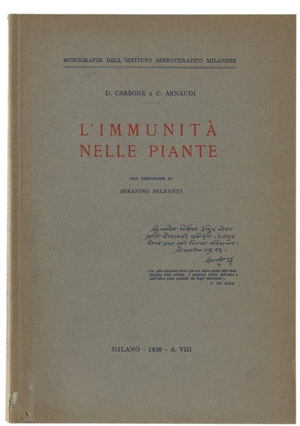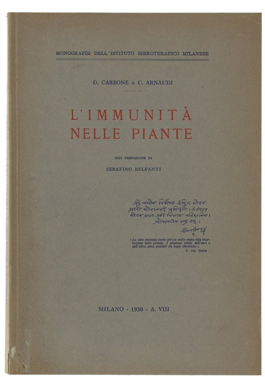 L'IMMUNITA' NELLE PIANTE | Livres anciens et modernes | Carbone D., Arnaudi C.