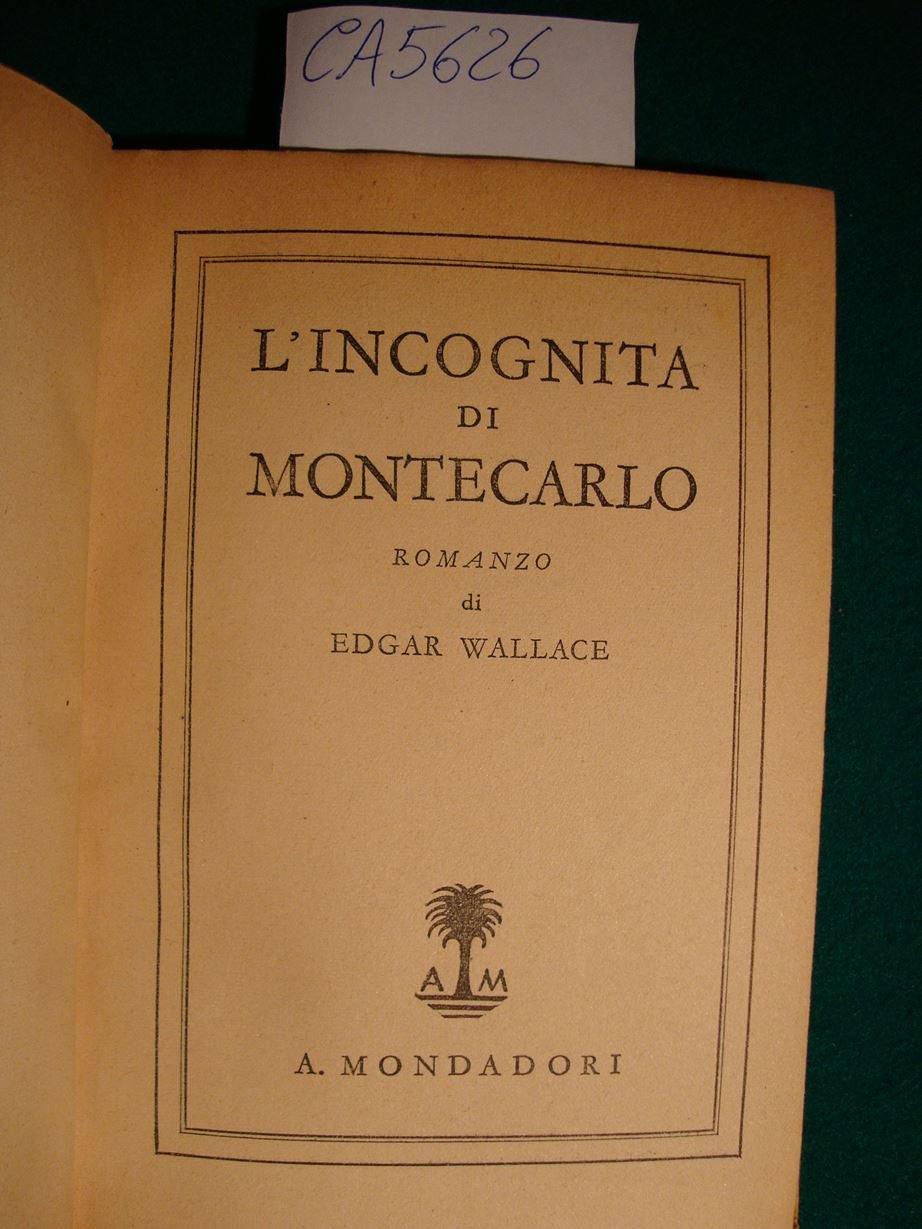 L'incognita di Montecarlo - Romanzo | Livres anciens et modernes | Wallace Edgar, Trad. Bruno Maffi.