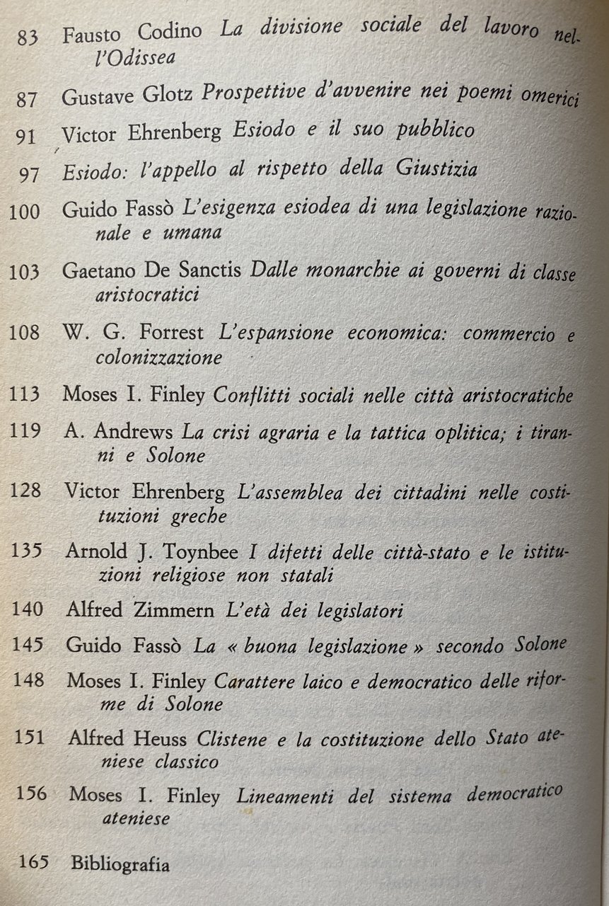 Autore: AA.VV. (Autori Vari): V. Gordon Childe, Victor Ehrenberg, Carl W. Blegen, Chester G. Starr, Alfred Heuss, Denys Page, Bruno Snell, Eric A. Havelock, Fausto Codino, Gustave Glotz, Esiodo, Guido Fassò, Gaetano De Sanctis, W. G. Forrest, Moses I. Finley, A. Andrews, Arnold J. Toynbee, Alfred Zimmern
