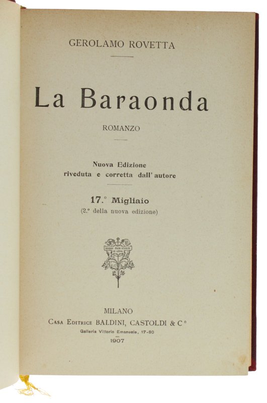 LA BARAONDA - Romanzo | Livres anciens et modernes | Rovetta Gerolamo