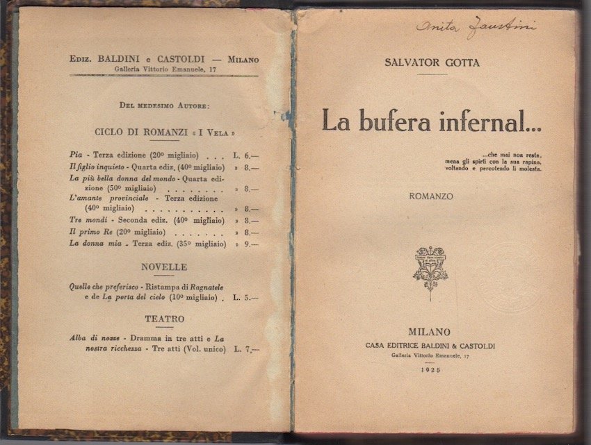 La bufera infernal.: romanzo. | Livres anciens et modernes | Gotta, Salvator.
