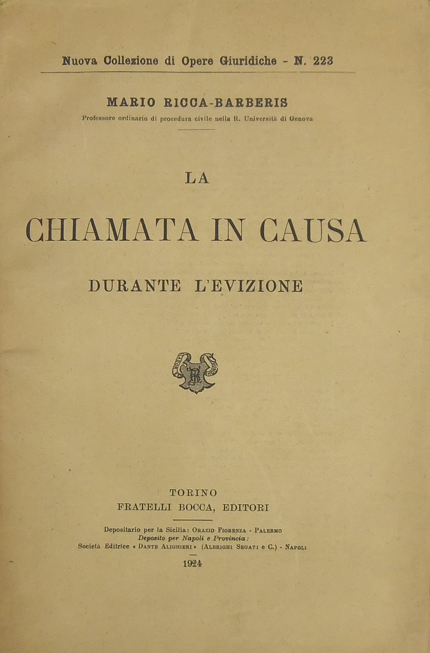 La chiamata in causa durante l'evizione | Livres anciens et modernes | Ricca Barberis Mario