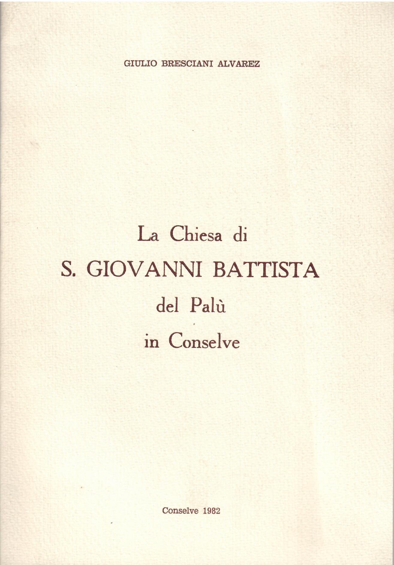 LA CHIESA DI S. GIOVANNI BATTISTA DEL PALU' IN CONSELVE | Livres anciens et modernes | Giulio Bresciani Alvarez