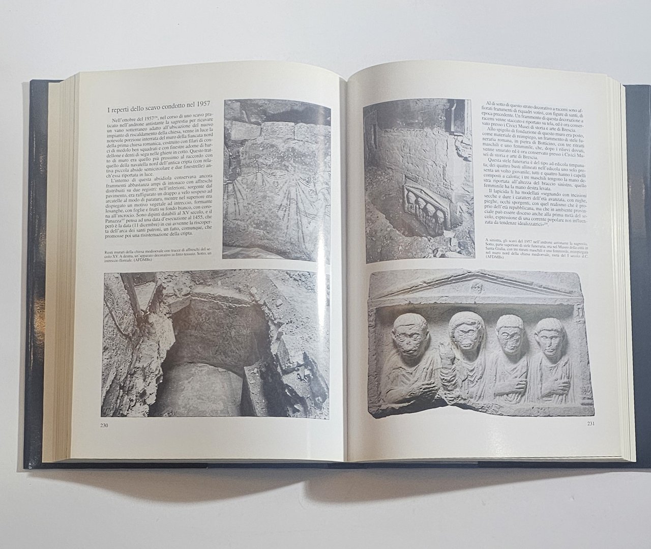 Ricco apparato iconografico con fotografie degli interni, dettagli architettonici, reperti e decorazioni, utile per studiosi e appassionati di storia locale e arte sacra.