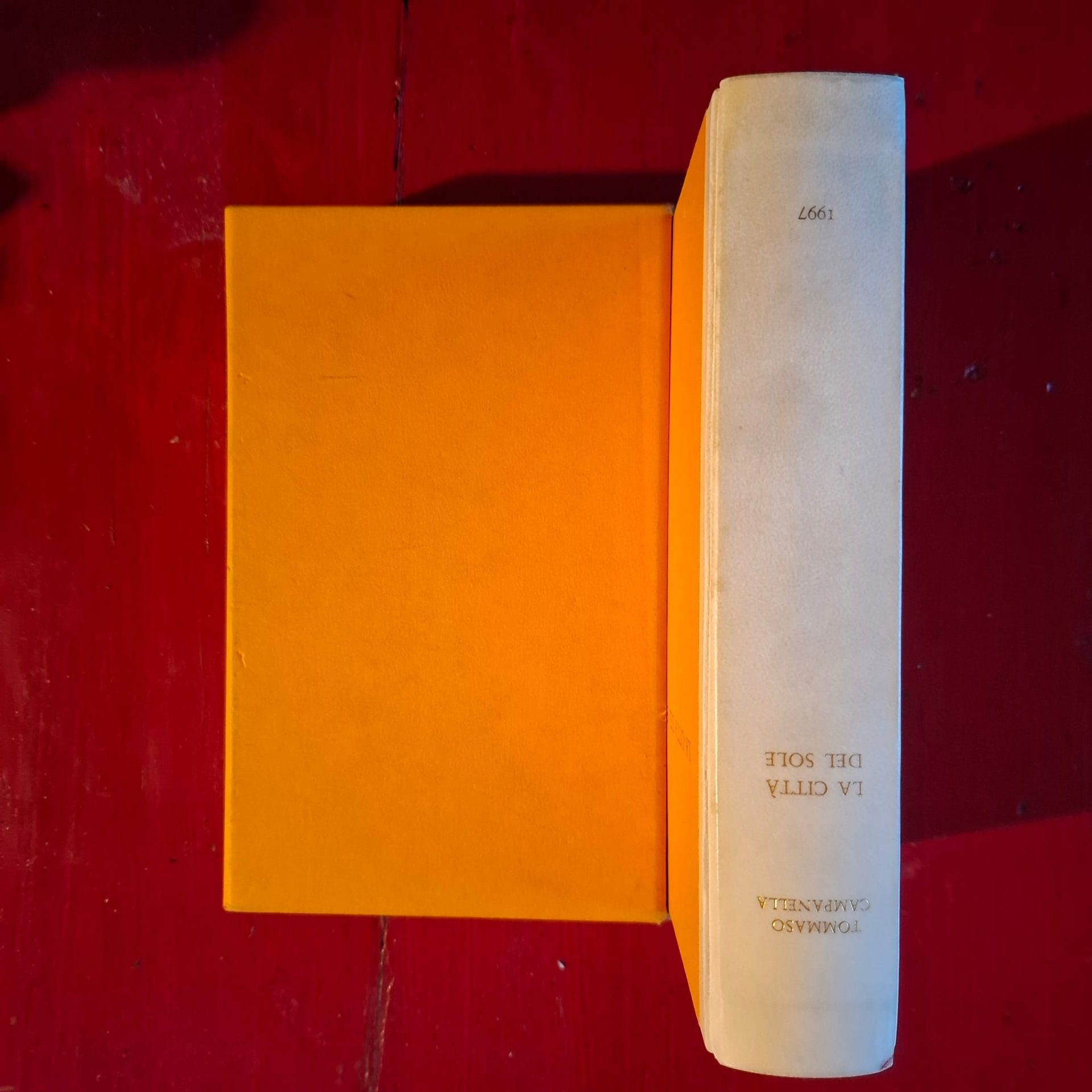 Prima edizione, collana Biblioteca dell'Utopia 7, traduzione e cura della Civitas Solis (1637) di Carlo Carena, introduzione di Lina Bolzoni, nota ai testi di Carlo Carena, rilegata, cartonata, dorso in pelle, titoli in oro al piatto e al dorso, custodia cartonata, allegato segnalibro, formato 14x2w2, pagine LIX-410, con un ritratto di Tommaso Campanella di Piero Leddi, ottime condizioni - 52584