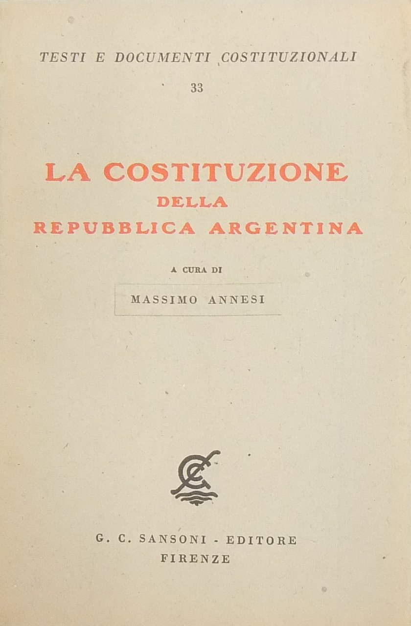 La Costituzione della Repubblica Argentina | Livres anciens et modernes | Annesi Massimo (A C. Di), Annesi Massimo