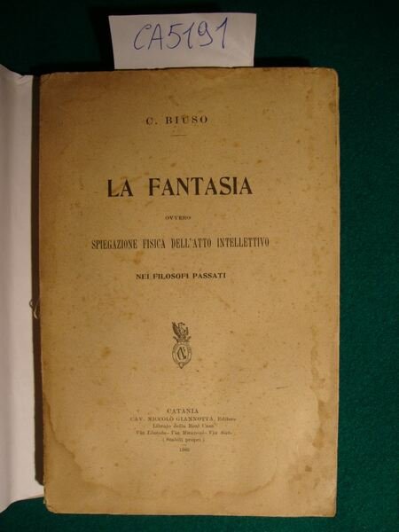 La fantasia ovvero spiegazione fisica dell'atto intellettivo nei filosofi passati | Livres anciens et modernes | Biuso C.