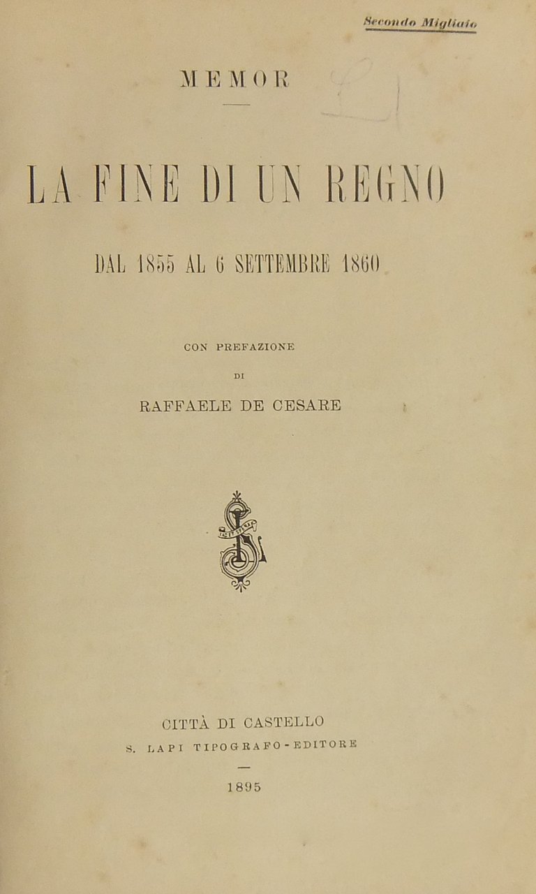 La fine di un Regno dal 1855 al 6 settembre 1860. Con prefazione di Raffaele De Cesare | Livres anciens et modernes | De Cesare Raffaele (1845-1918)