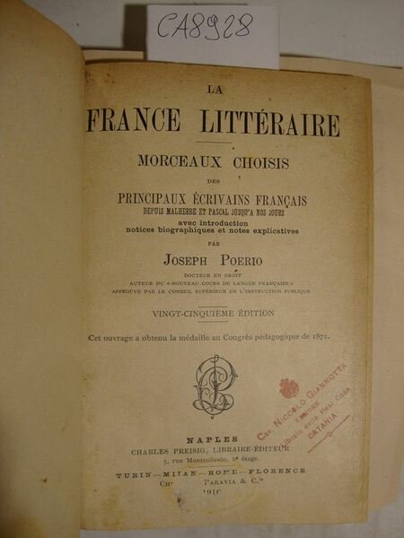 La France Littéraire - Morceaux Choisis des Principaux écrivains français depuis malherbe et Pascal Jusqu'a nos Jours avec introduction notices biographiques et notes explicatives | Livres anciens et modernes | Poerio Joseph