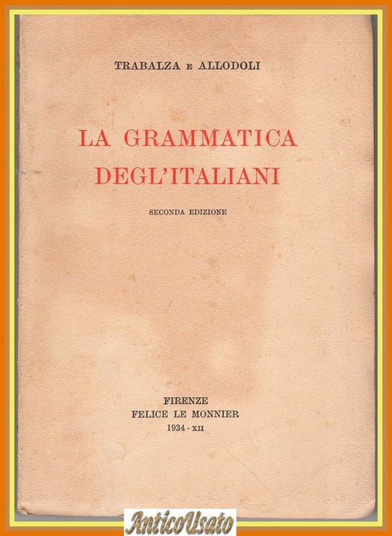 LA GRAMMATICA DEGLI ITALIANI di Trabalza e Allodoli 1934 Le Monnier Libro