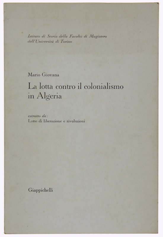LA LOTTA CONTRO IL COLONIALISMO IN ALGERIA. Estratto da "Lotta di liberazione e rivoluzioni" | Livres anciens et modernes | Giovana Mario.