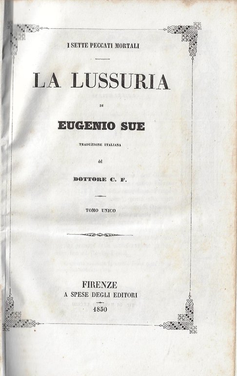 La lussuria | Livres anciens et modernes | Sue Eugène, ,Sue Eugène