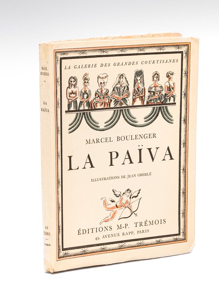 Exemplaire sur vélin non numéroté (exemplaire de presse), illustrations de Jean Oberlé, 1 vol. in-12 br. sous couv. rempliée, Editions M.-P. Trémois, Paris, 1930, 93 pp. Très bel envoi de l'auteur Marcel Boulenger : "à Charlotte & Charley, cette histoire d'une horrible créature, bien affectueusement". Bon exemplaire. Esther Lachmann, connue sous le nom de La Païva (1819-1884) défraya la chronique mondaine et politique à partir 1840, maîtresse d'hommes fortunés (mais vite infortunés.). Son futur mari, Guido von Donnersmarck (cousin de Bismarck) lui fera construire un somptueux hôtel au 25 avenue des Champs Elysées.